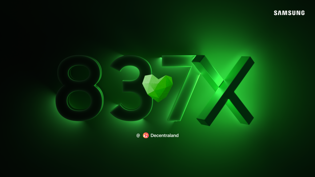 Samsung 837X opened its doors in January at CES 2022, leading visitors on an immersive journey through the Connectivity Theater, Sustainability Forest and Customization Stage. The initial launch drew 52,000 unique visitors in just two days – one of the most ever for a Decentraland experience. Players wowed us by collecting 149,000 NFT badges at launch, with more than 90% of visitors claiming at least one badge and the majority of which claiming all four. The new quest is a tribute to Samsung fans who made the debut a success. 837X is just another way Samsung offers people next-level experiences and connects with them where technology and culture collide.